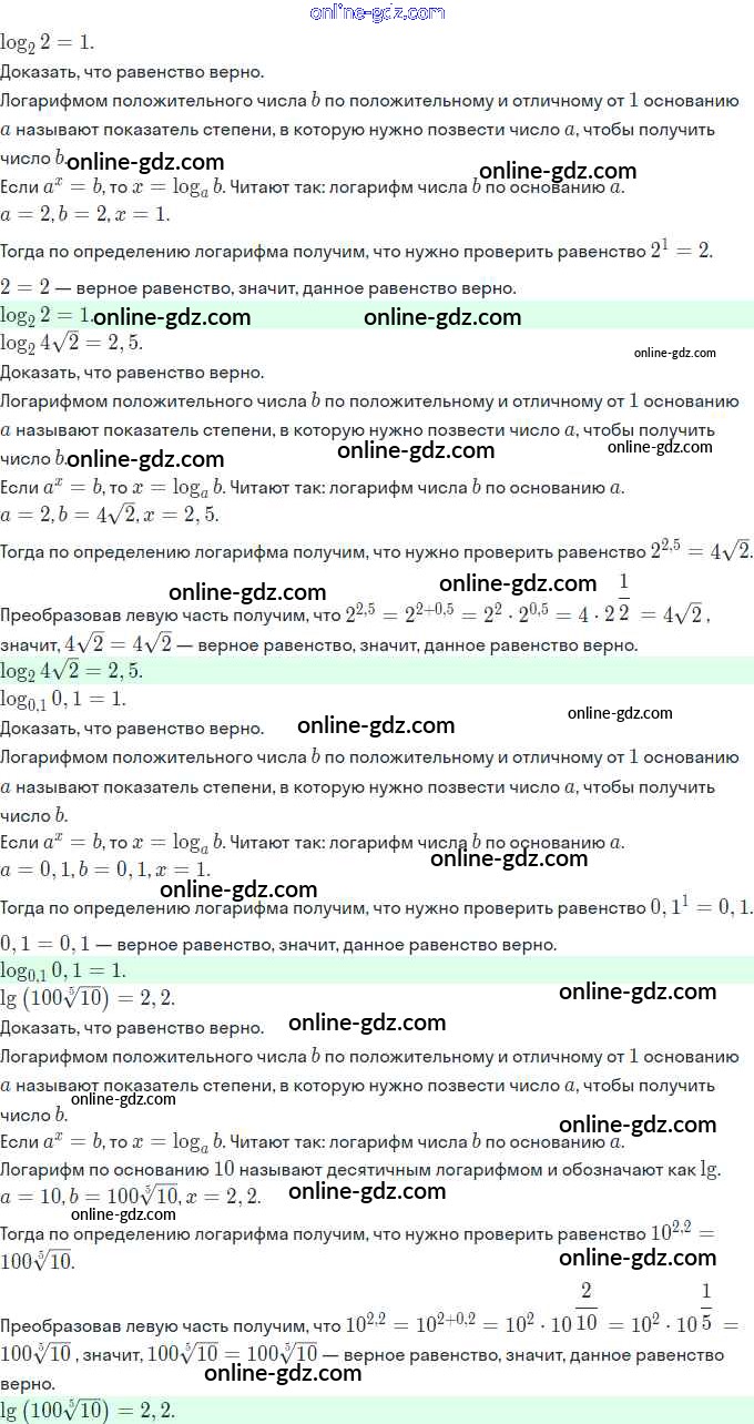 Готовые домашние задания по Алгебре за 11 класс Задачник Мордкович, Семёнов Базовый и углубленный уровень 2017 - §14. Понятие логарифма 14.2