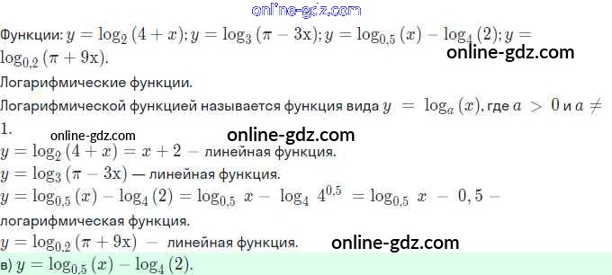Готовые домашние задания по Алгебре за 11 класс Задачник Мордкович, Семёнов Базовый и углубленный уровень 2017 - §15. Логарифмическая функция, её свойства и график 15.1