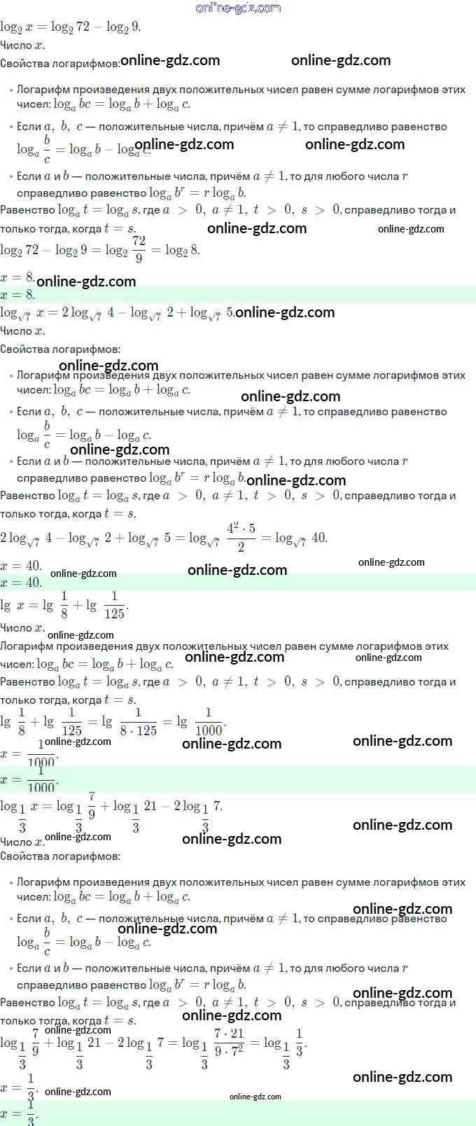Готовые домашние задания по Алгебре за 11 класс Задачник Мордкович, Семёнов Базовый и углубленный уровень 2017 - §16. Свойства логарифмов 16.27