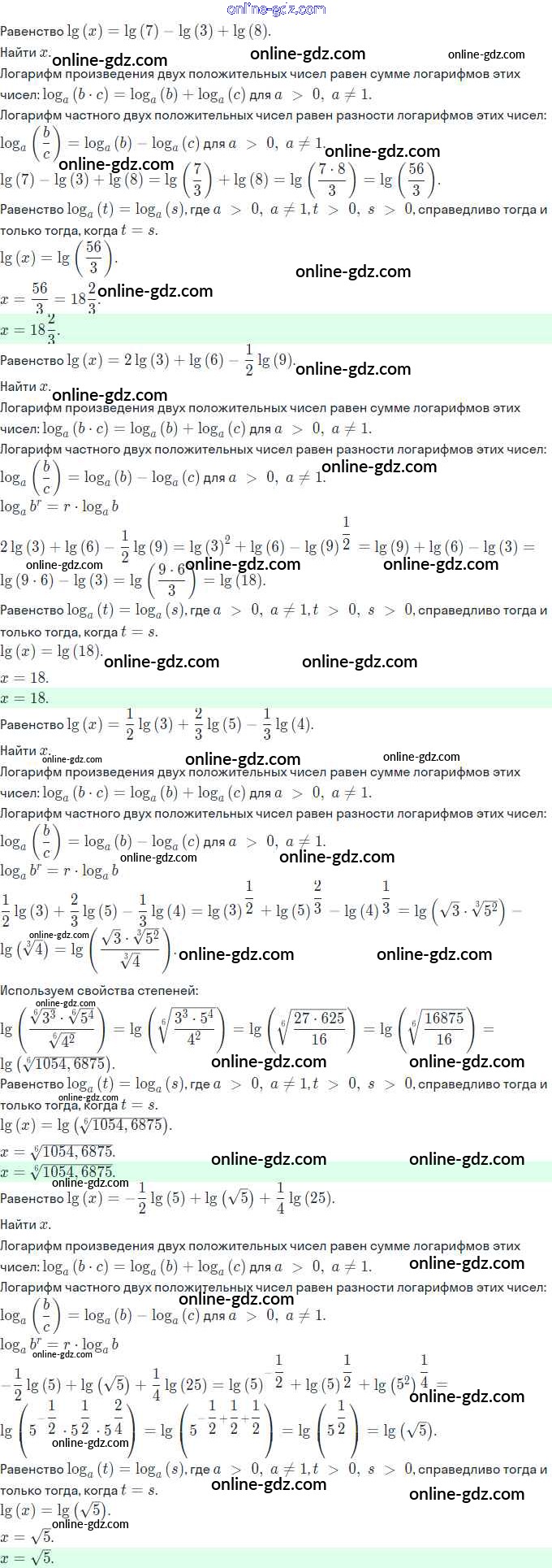 Готовые домашние задания по Алгебре за 11 класс Задачник Мордкович, Семёнов Базовый и углубленный уровень 2017 - §16. Свойства логарифмов 16.28