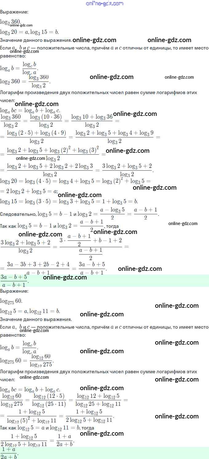 Готовые домашние задания по Алгебре за 11 класс Задачник Мордкович, Семёнов Базовый и углубленный уровень 2017 - §16. Свойства логарифмов 16.61