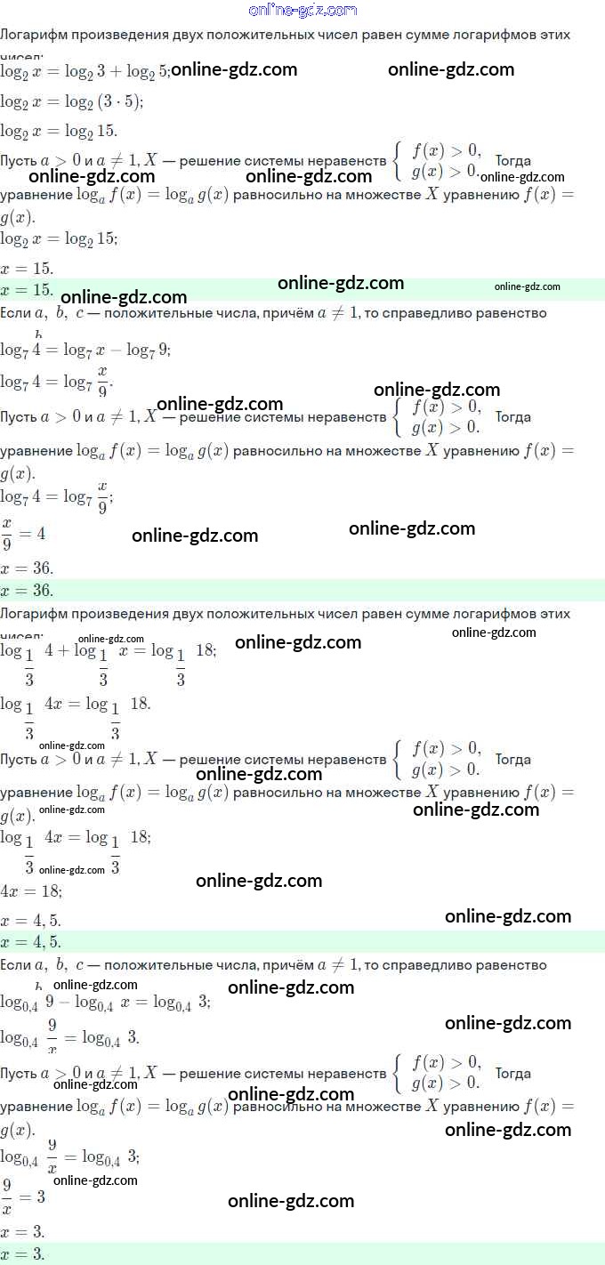 Готовые домашние задания по Алгебре за 11 класс Задачник Мордкович, Семёнов Базовый и углубленный уровень 2017 - §17. Логарифмические уравнения 17.15