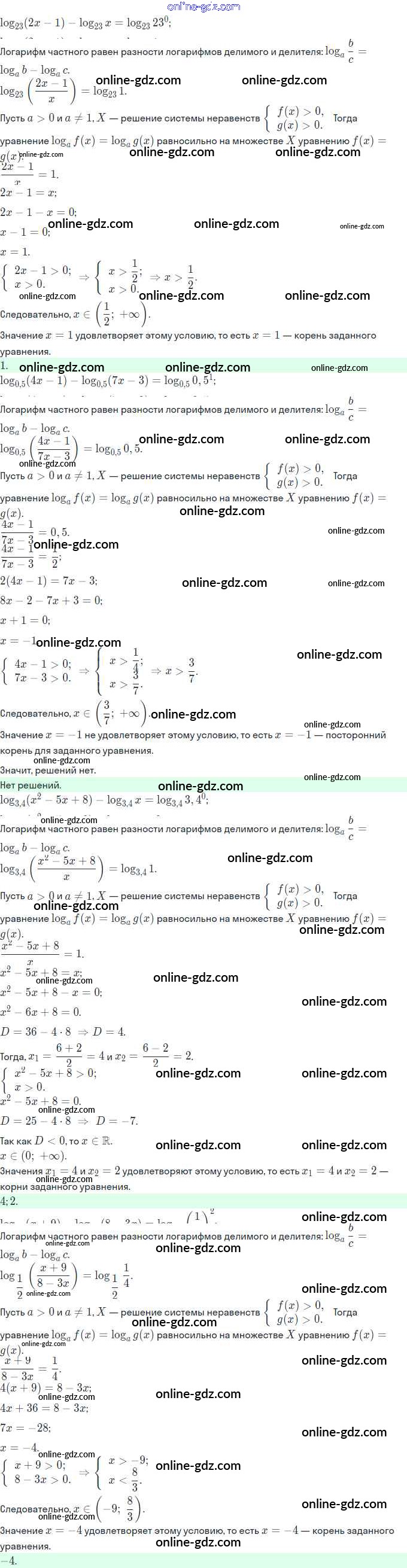 Готовые домашние задания по Алгебре за 11 класс Задачник Мордкович, Семёнов Базовый и углубленный уровень 2017 - §17. Логарифмические уравнения 17.18