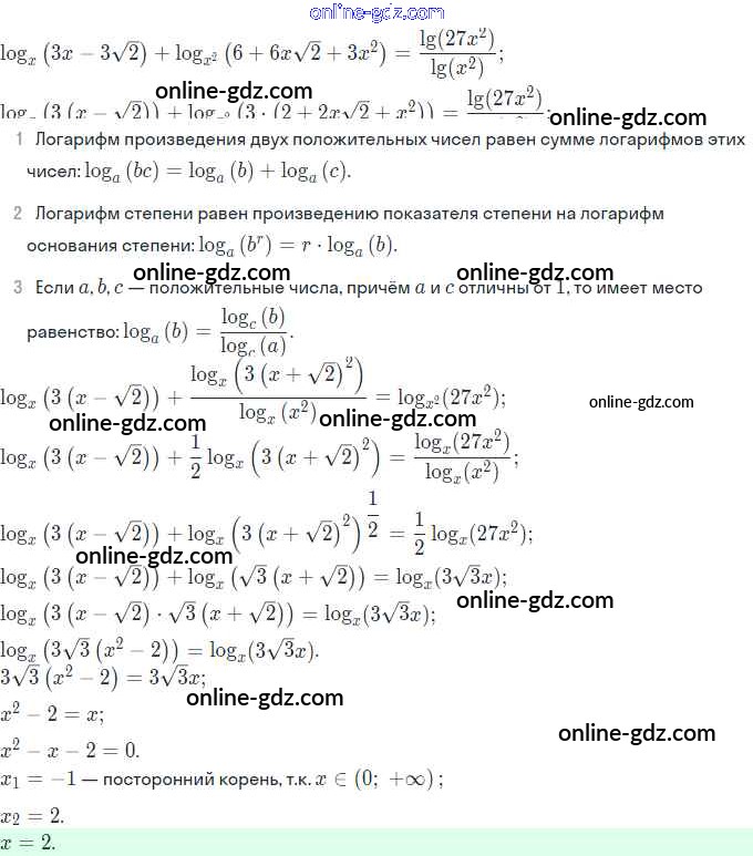 Готовые домашние задания по Алгебре за 11 класс Задачник Мордкович, Семёнов Базовый и углубленный уровень 2017 - §17. Логарифмические уравнения 17.43
