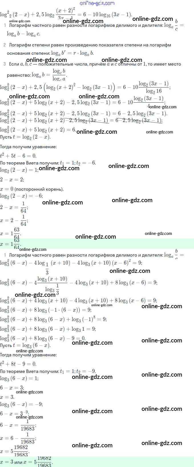 Готовые домашние задания по Алгебре за 11 класс Задачник Мордкович, Семёнов Базовый и углубленный уровень 2017 - §17. Логарифмические уравнения 17.44