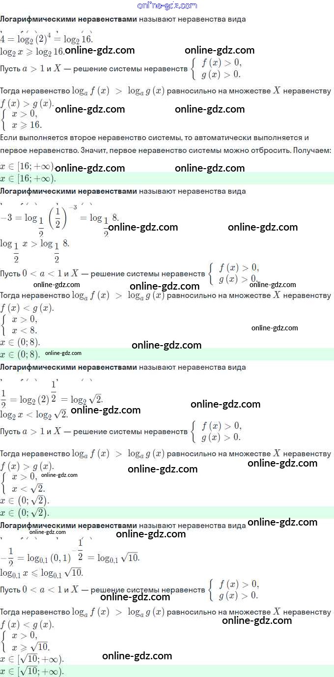 Готовые домашние задания по Алгебре за 11 класс Задачник Мордкович, Семёнов Базовый и углубленный уровень 2017 - §18. Логарифмические неравенства 18.1