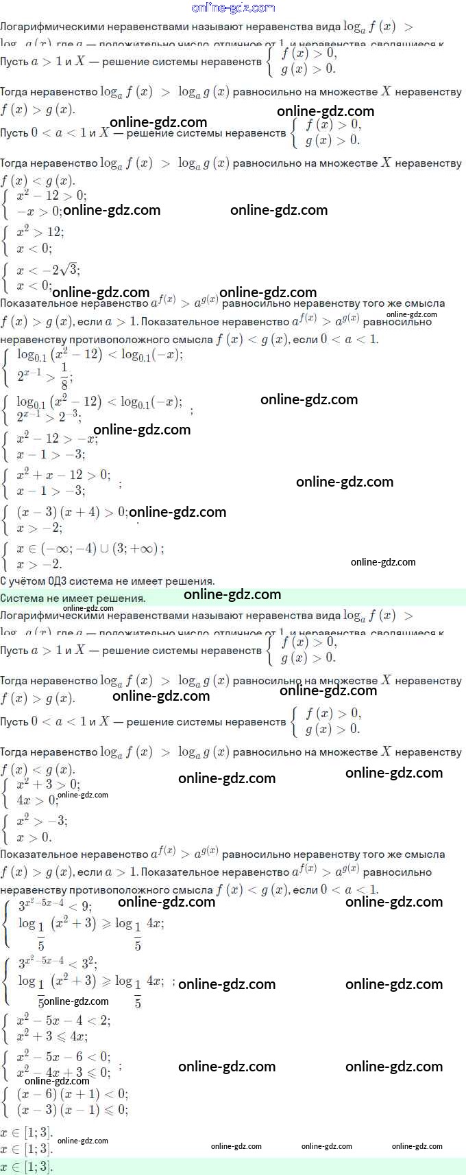 Готовые домашние задания по Алгебре за 11 класс Задачник Мордкович, Семёнов Базовый и углубленный уровень 2017 - §18. Логарифмические неравенства 18.42