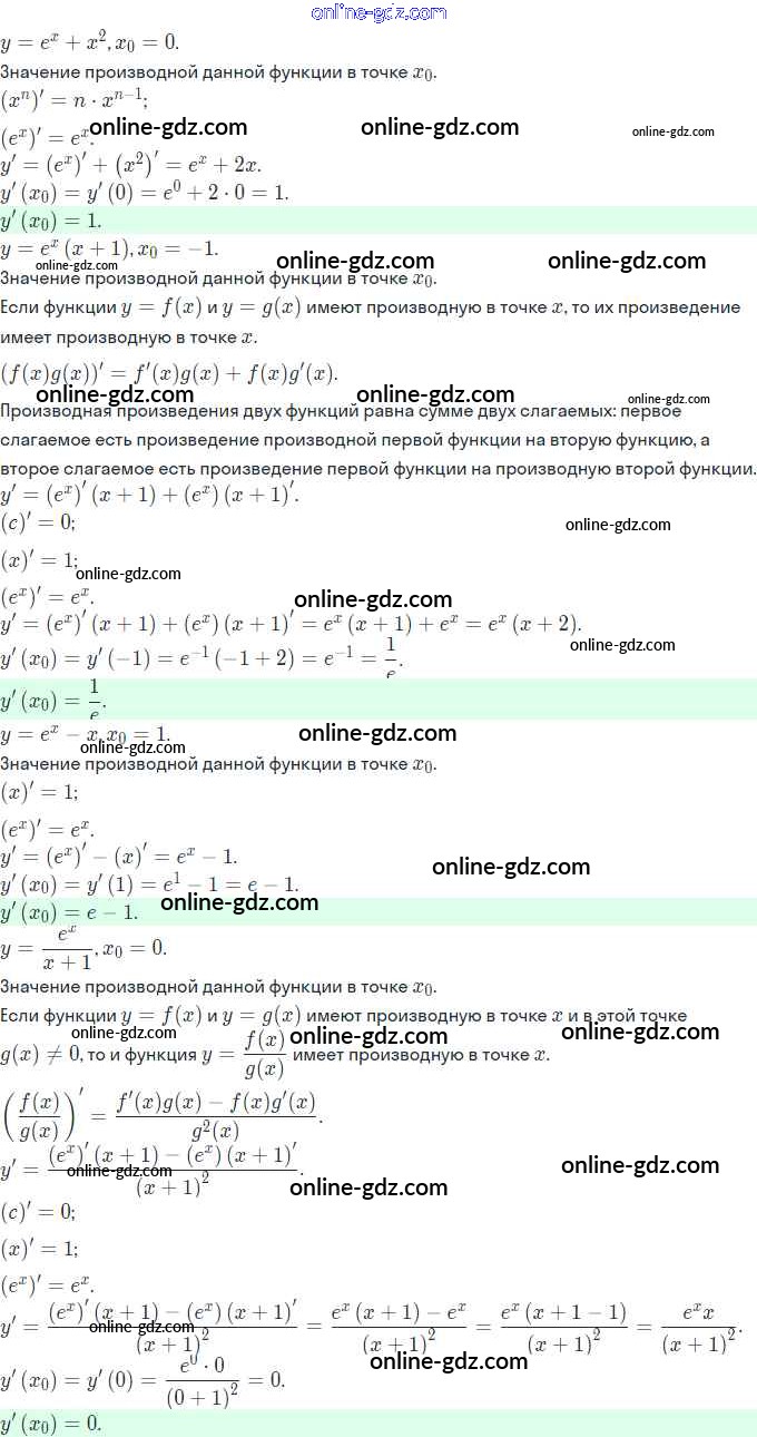 Готовые домашние задания по Алгебре за 11 класс Задачник Мордкович, Семёнов Базовый и углубленный уровень 2017 - §19. Дифференцирование показательной и логарифмической функций 19.5