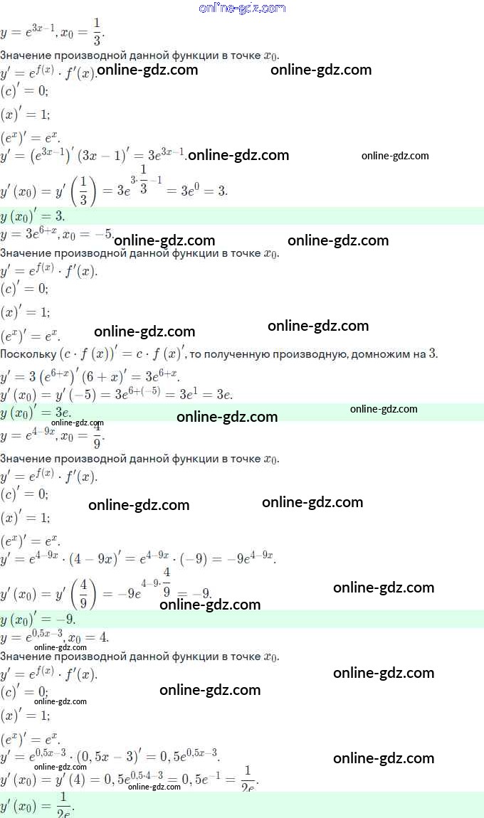 Готовые домашние задания по Алгебре за 11 класс Задачник Мордкович, Семёнов Базовый и углубленный уровень 2017 - §19. Дифференцирование показательной и логарифмической функций 19.6