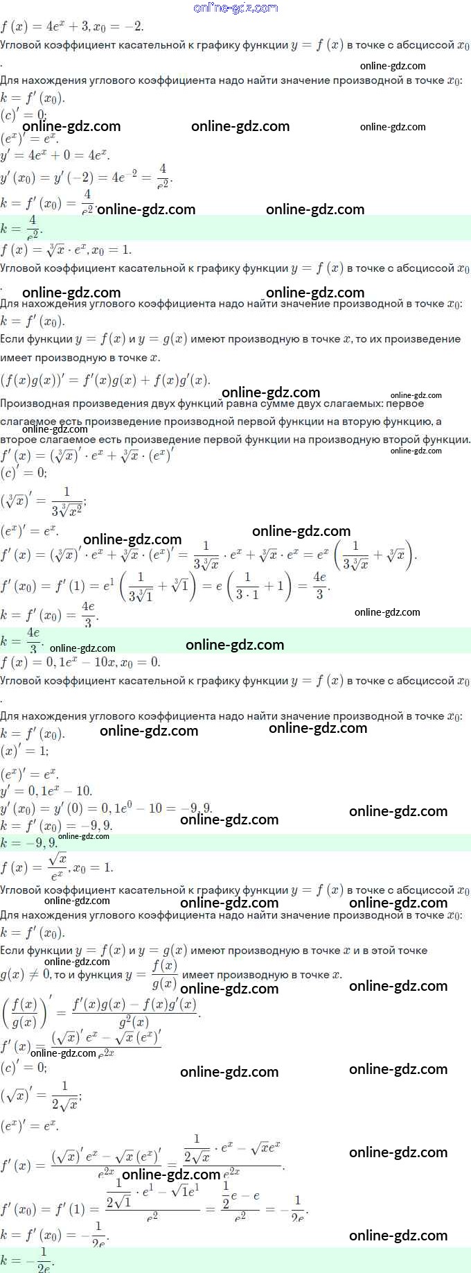 Готовые домашние задания по Алгебре за 11 класс Задачник Мордкович, Семёнов Базовый и углубленный уровень 2017 - §19. Дифференцирование показательной и логарифмической функций 19.7
