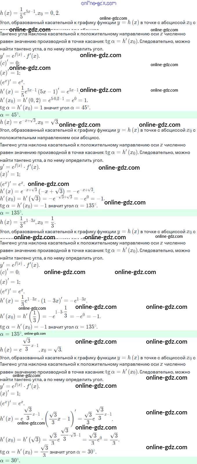 Готовые домашние задания по Алгебре за 11 класс Задачник Мордкович, Семёнов Базовый и углубленный уровень 2017 - §19. Дифференцирование показательной и логарифмической функций 19.9