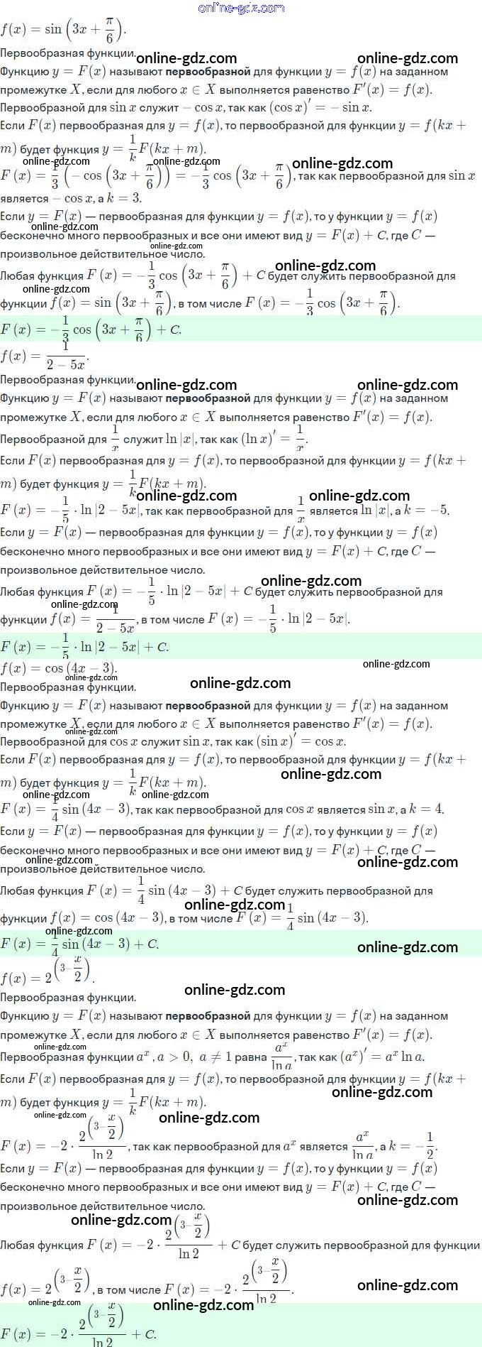 Готовые домашние задания по Алгебре за 11 класс Задачник Мордкович, Семёнов Базовый и углубленный уровень 2017 - §20. Первообразная и неопределённый интеграл 20.13