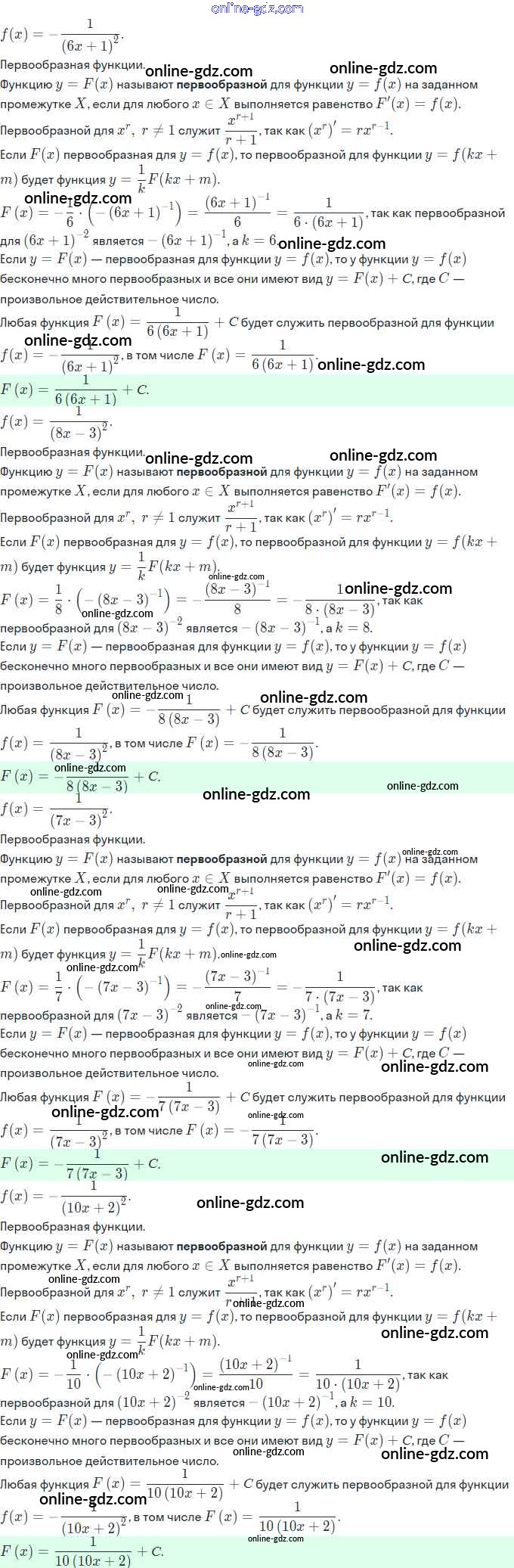 Готовые домашние задания по Алгебре за 11 класс Задачник Мордкович, Семёнов Базовый и углубленный уровень 2017 - §20. Первообразная и неопределённый интеграл 20.14