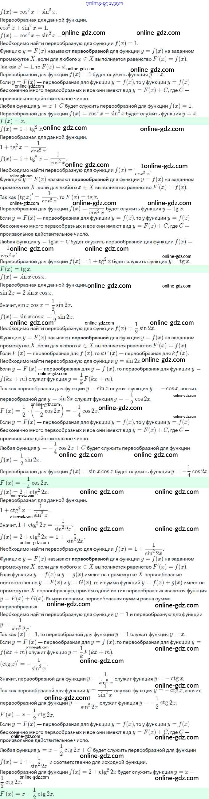 Готовые домашние задания по Алгебре за 11 класс Задачник Мордкович, Семёнов Базовый и углубленный уровень 2017 - §20. Первообразная и неопределённый интеграл 20.16