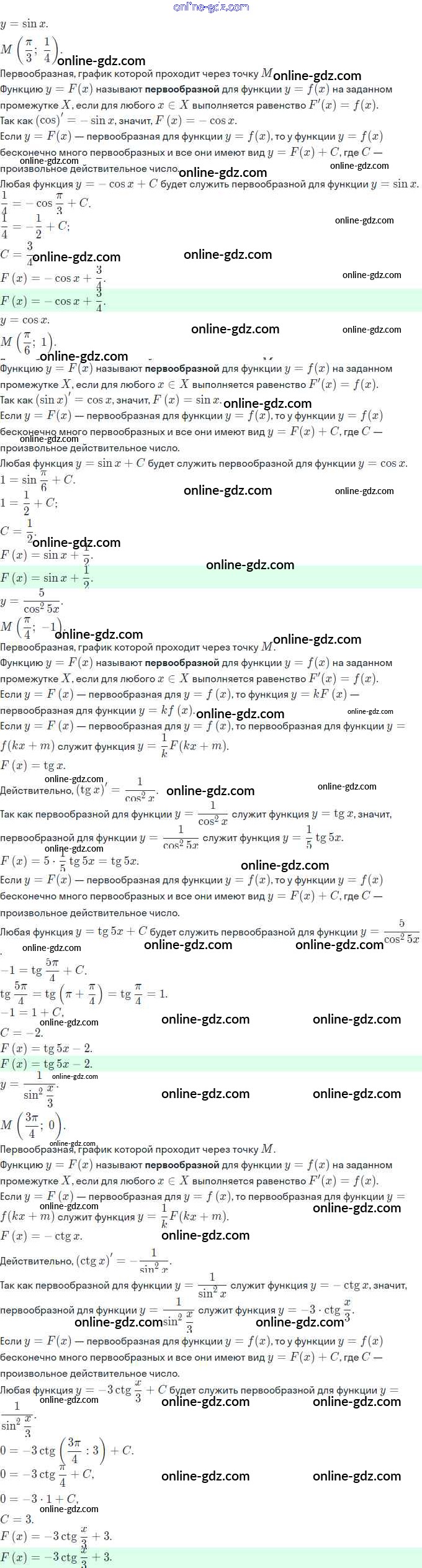 Готовые домашние задания по Алгебре за 11 класс Задачник Мордкович, Семёнов Базовый и углубленный уровень 2017 - §20. Первообразная и неопределённый интеграл 20.21