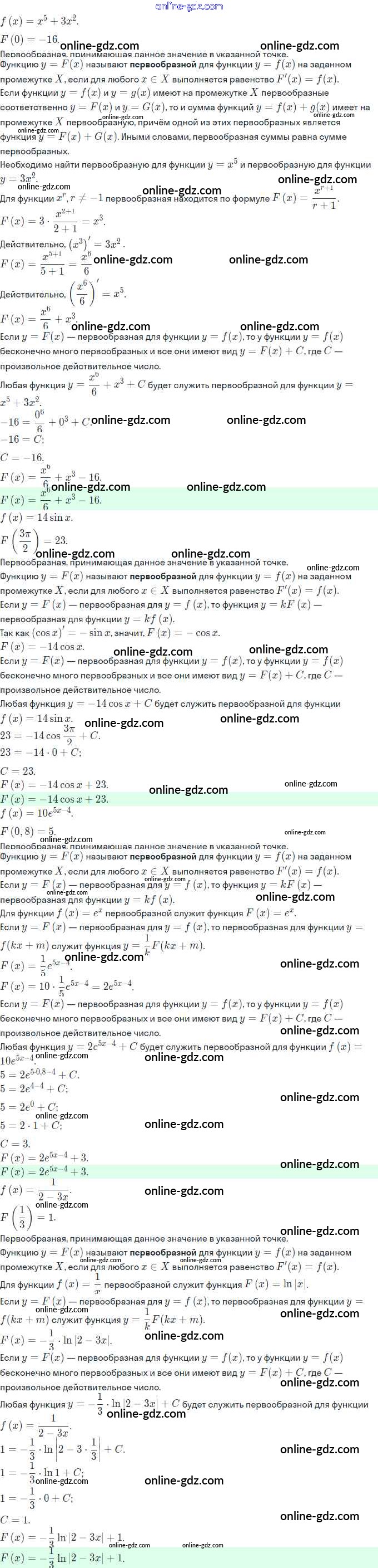 Готовые домашние задания по Алгебре за 11 класс Задачник Мордкович, Семёнов Базовый и углубленный уровень 2017 - §20. Первообразная и неопределённый интеграл 20.25