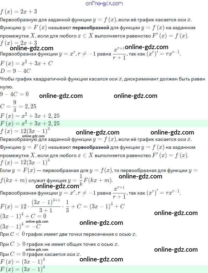 Готовые домашние задания по Алгебре за 11 класс Задачник Мордкович, Семёнов Базовый и углубленный уровень 2017 - §20. Первообразная и неопределённый интеграл 20.32