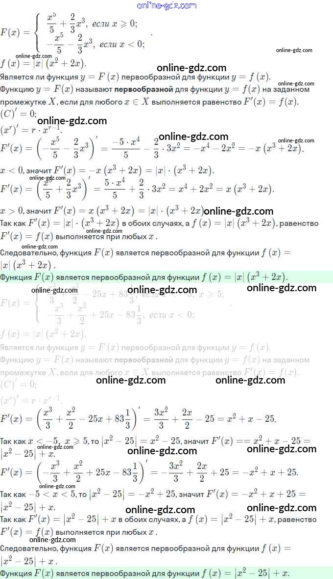 Готовые домашние задания по Алгебре за 11 класс Задачник Мордкович, Семёнов Базовый и углубленный уровень 2017 - §20. Первообразная и неопределённый интеграл 20.9