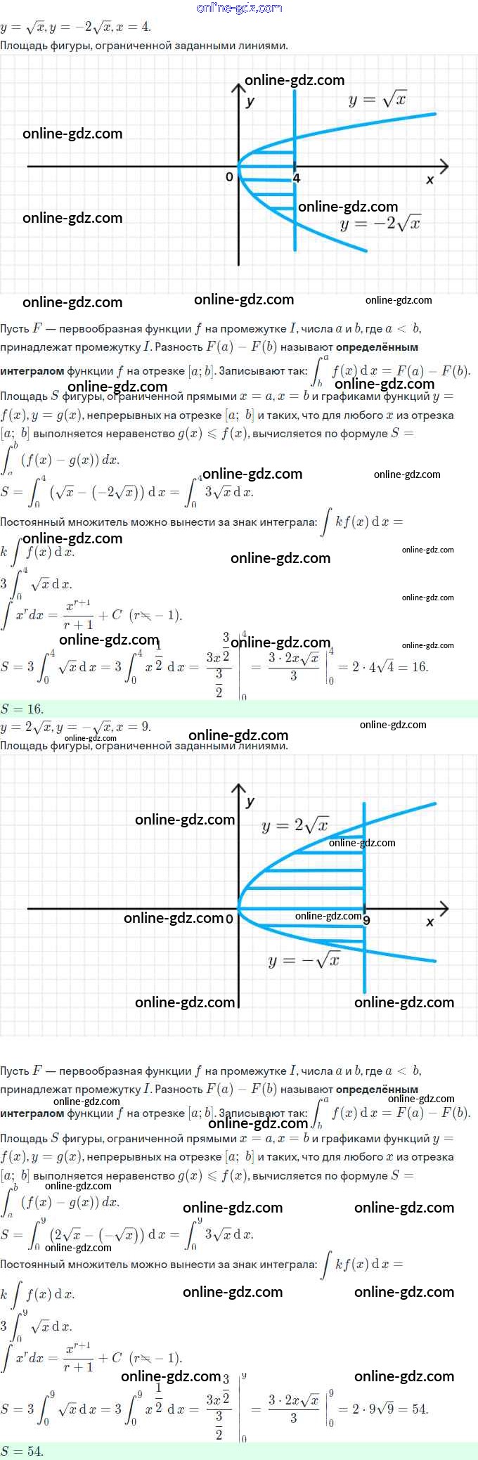 Готовые домашние задания по Алгебре за 11 класс Задачник Мордкович, Семёнов Базовый и углубленный уровень 2017 - §21. Определённый интеграл 21.54