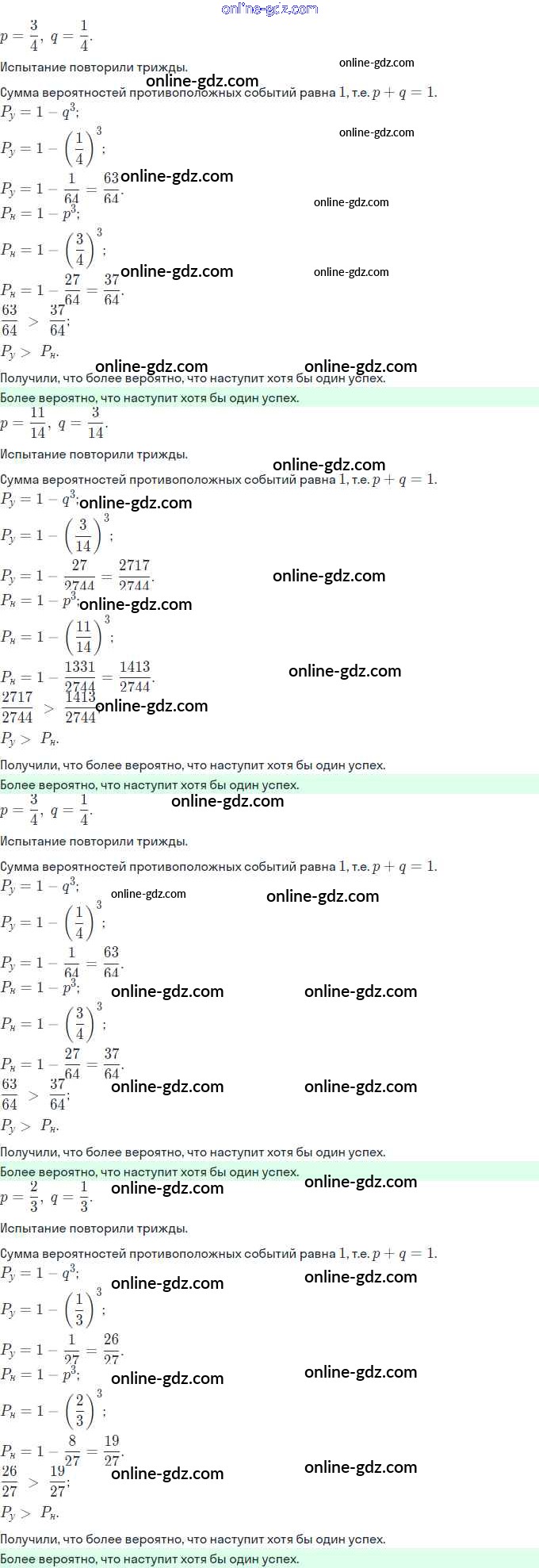 Готовые домашние задания по Алгебре за 11 класс Задачник Мордкович, Семёнов Базовый и углубленный уровень 2017 - §23. Независимые повторения испытаний с двумя исходами 23.4