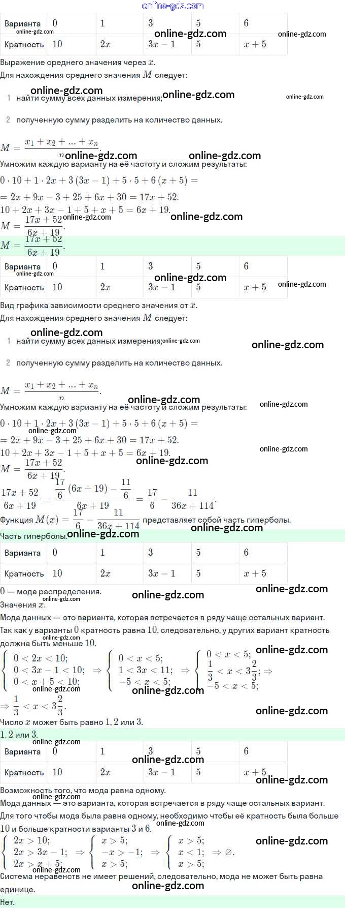 Готовые домашние задания по Алгебре за 11 класс Задачник Мордкович, Семёнов Базовый и углубленный уровень 2017 - §24. Статистические методы обработки информации 24.20