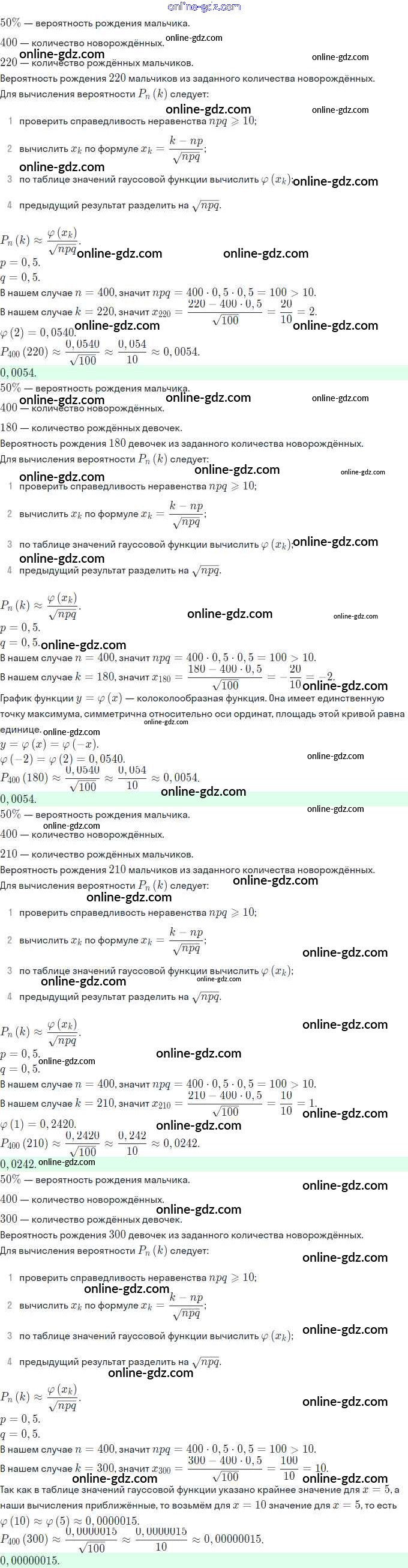 Готовые домашние задания по Алгебре за 11 класс Задачник Мордкович, Семёнов Базовый и углубленный уровень 2017 - §25. Гауссова кривая. Закон больших чисел 25.10