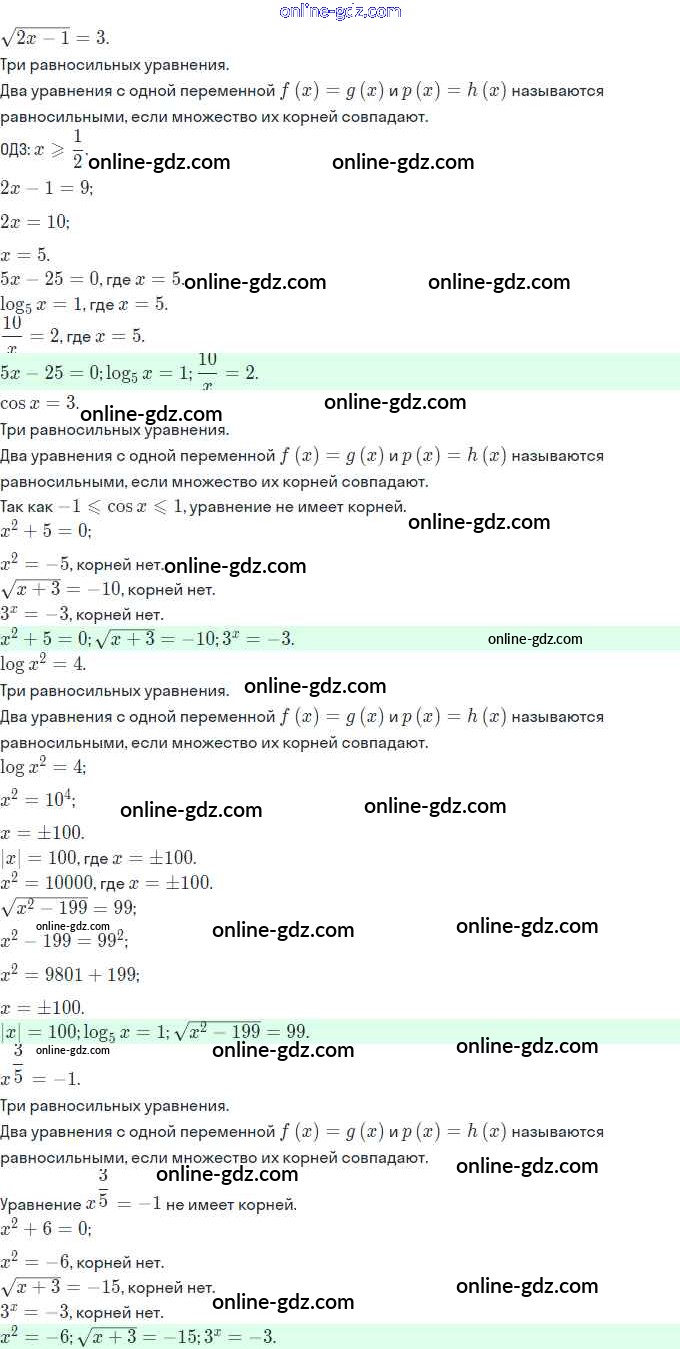 Готовые домашние задания по Алгебре за 11 класс Задачник Мордкович, Семёнов Базовый и углубленный уровень 2017 - §26. Равносильность уравнений 26.3