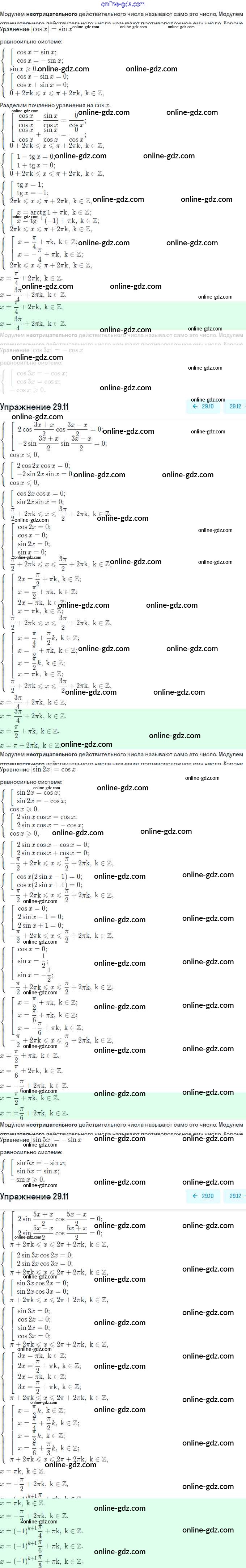 Готовые домашние задания по Алгебре за 11 класс Задачник Мордкович, Семёнов Базовый и углубленный уровень 2017 - §29. Уравнения и неравенства с модулями 29.11