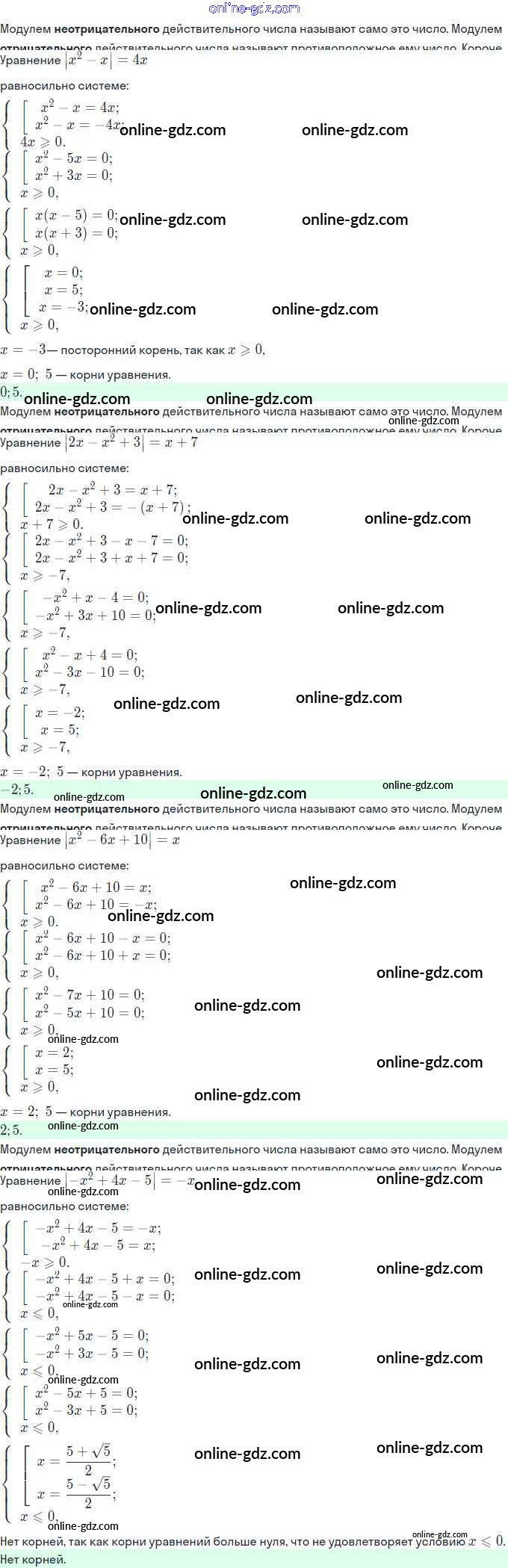 Готовые домашние задания по Алгебре за 11 класс Задачник Мордкович, Семёнов Базовый и углубленный уровень 2017 - §29. Уравнения и неравенства с модулями 29.9