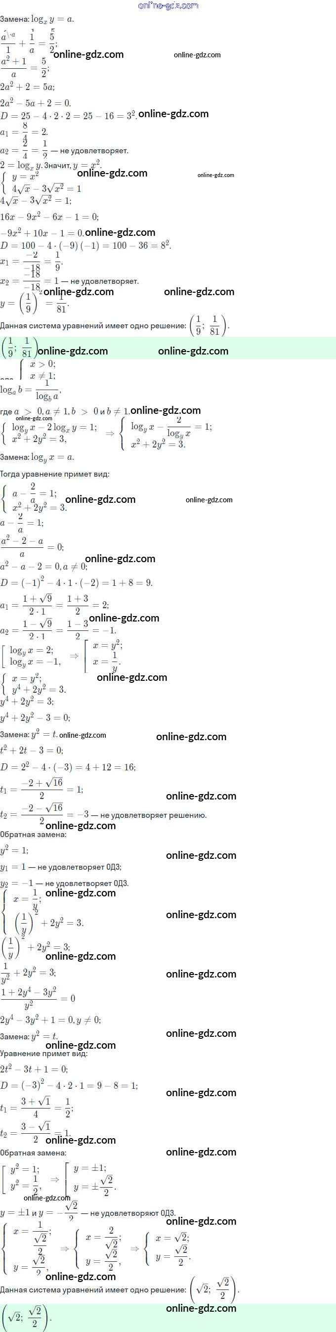 Готовые домашние задания по Алгебре за 11 класс Задачник Мордкович, Семёнов Базовый и углубленный уровень 2017 - §33. Системы уравнений 33.32