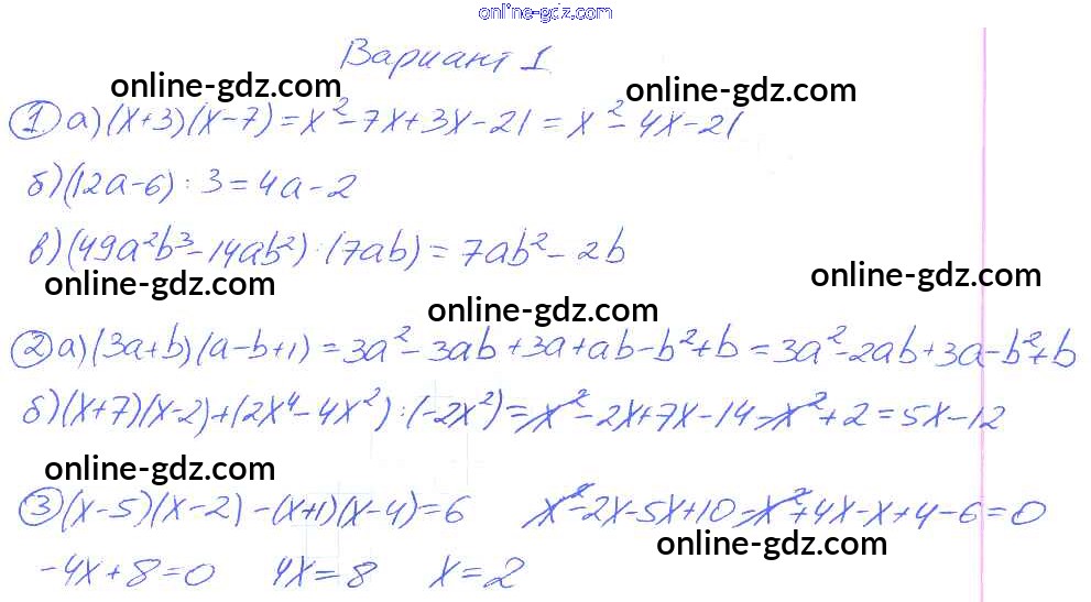 Готовые домашние задания по Алгебре за 7 класс Дидактические материалы Зив, Гольдич 2013 - СР-10 Самостоятельные работы. Варианты 1