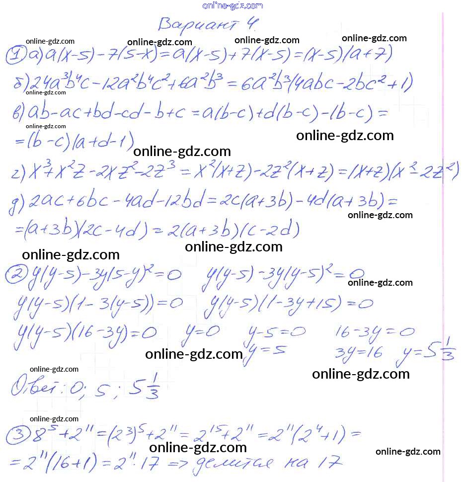 Готовые домашние задания по Алгебре за 7 класс Дидактические материалы Зив, Гольдич 2013 - СР-11 Самостоятельные работы. Варианты 4