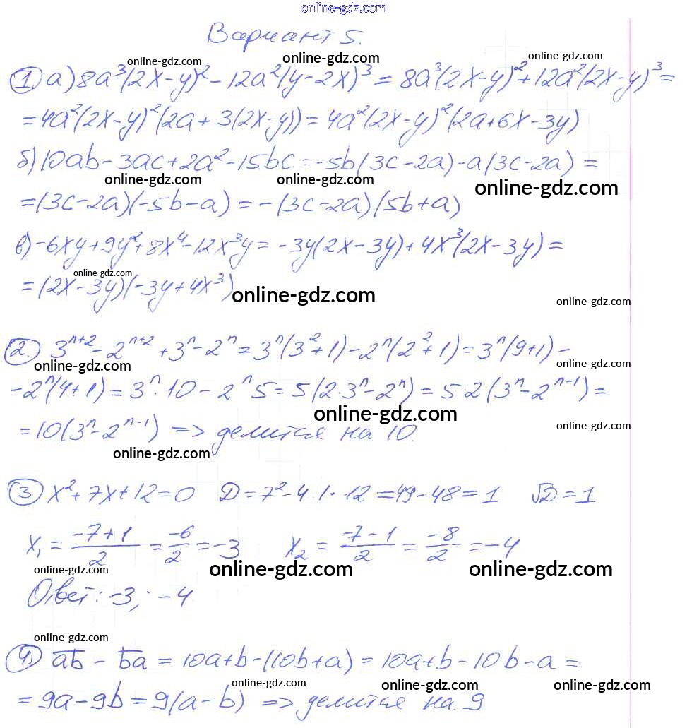 Готовые домашние задания по Алгебре за 7 класс Дидактические материалы Зив, Гольдич 2013 - СР-11 Самостоятельные работы. Варианты 5