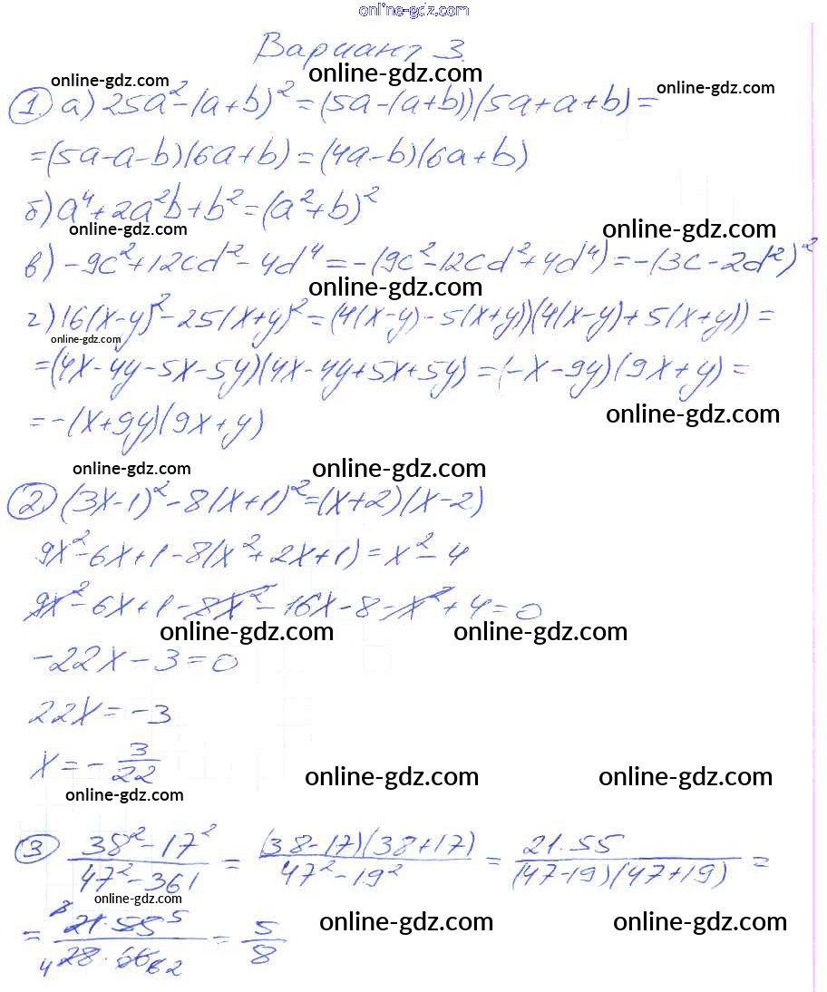 Готовые домашние задания по Алгебре за 7 класс Дидактические материалы Зив, Гольдич 2013 - СР-12 Самостоятельные работы. Варианты 3