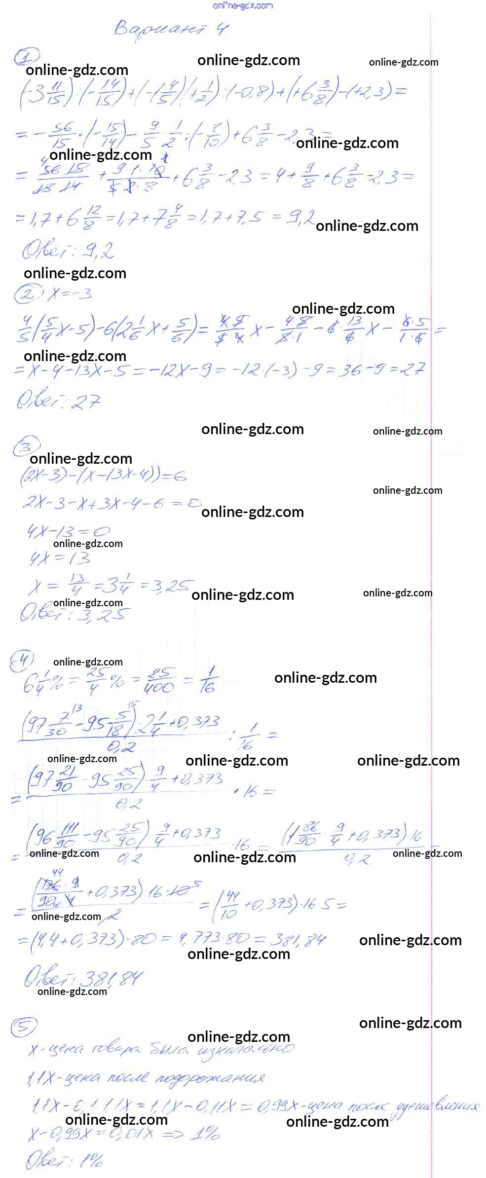 Готовые домашние задания по Алгебре за 7 класс Дидактические материалы Зив, Гольдич 2013 - СР-2 Самостоятельные работы. Варианты 4