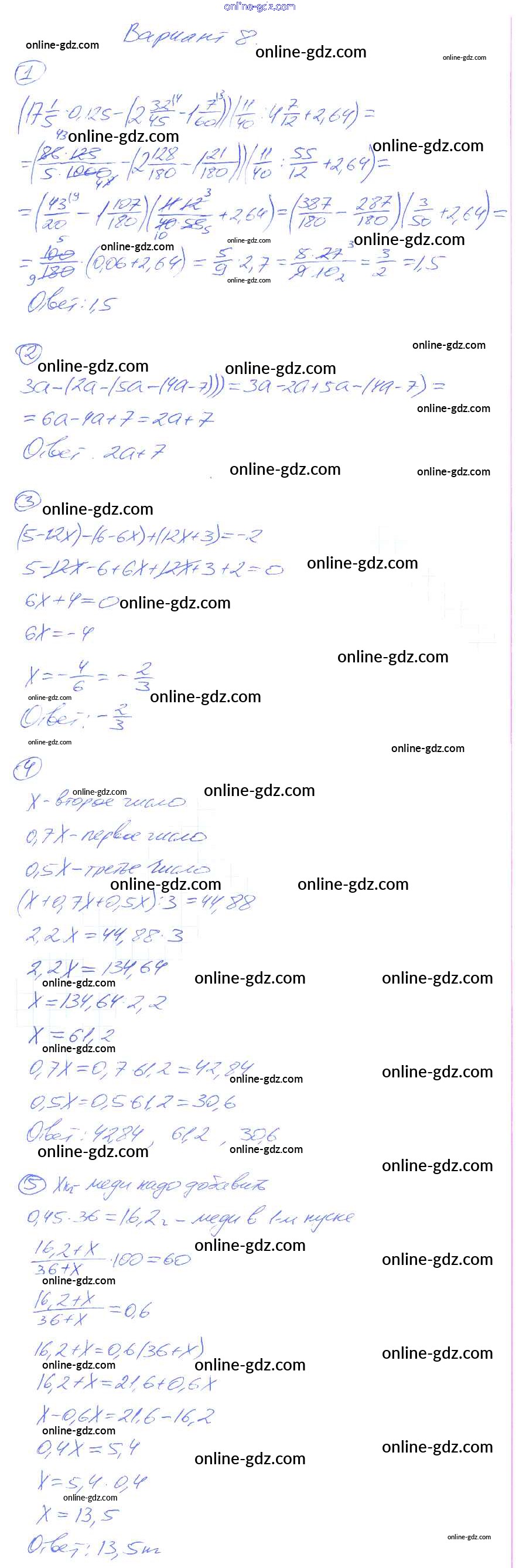 Готовые домашние задания по Алгебре за 7 класс Дидактические материалы Зив, Гольдич 2013 - СР-2 Самостоятельные работы. Варианты 8