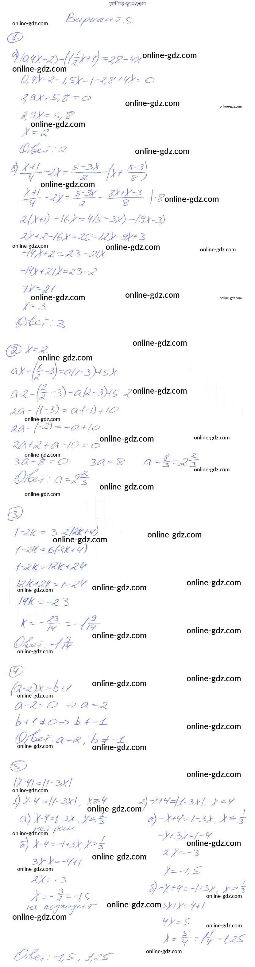 Готовые домашние задания по Алгебре за 7 класс Дидактические материалы Зив, Гольдич 2013 - СР-3 Самостоятельные работы. Варианты 5