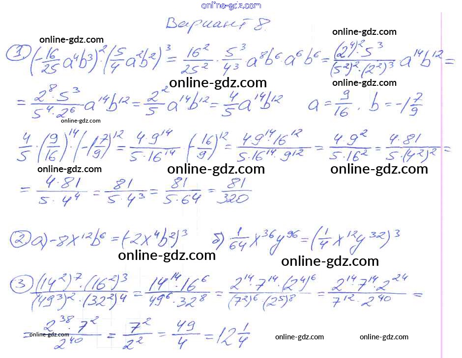 Готовые домашние задания по Алгебре за 7 класс Дидактические материалы Зив, Гольдич 2013 - СР-7 Самостоятельные работы. Варианты 8