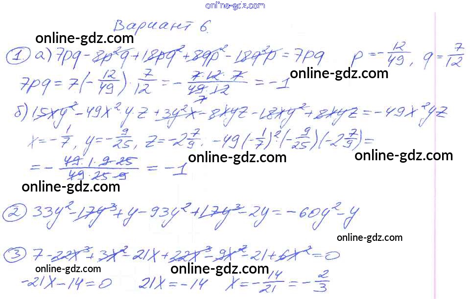 Готовые домашние задания по Алгебре за 7 класс Дидактические материалы Зив, Гольдич 2013 - СР-8 Самостоятельные работы. Варианты 6