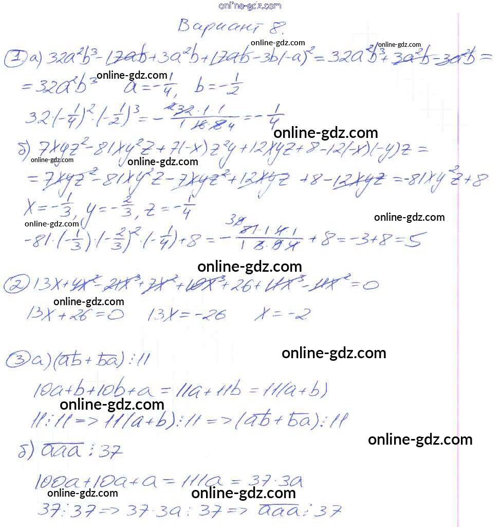 Готовые домашние задания по Алгебре за 7 класс Дидактические материалы Зив, Гольдич 2013 - СР-8 Самостоятельные работы. Варианты 8