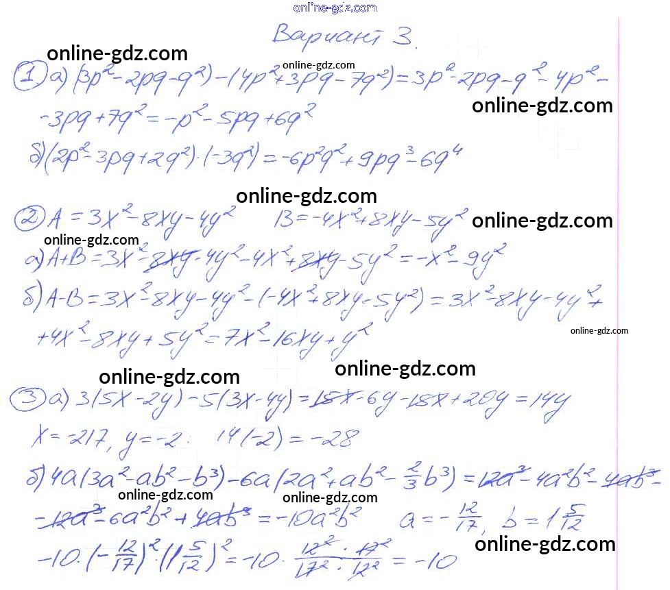 Готовые домашние задания по Алгебре за 7 класс Дидактические материалы Зив, Гольдич 2013 - СР-9 Самостоятельные работы. Варианты 3
