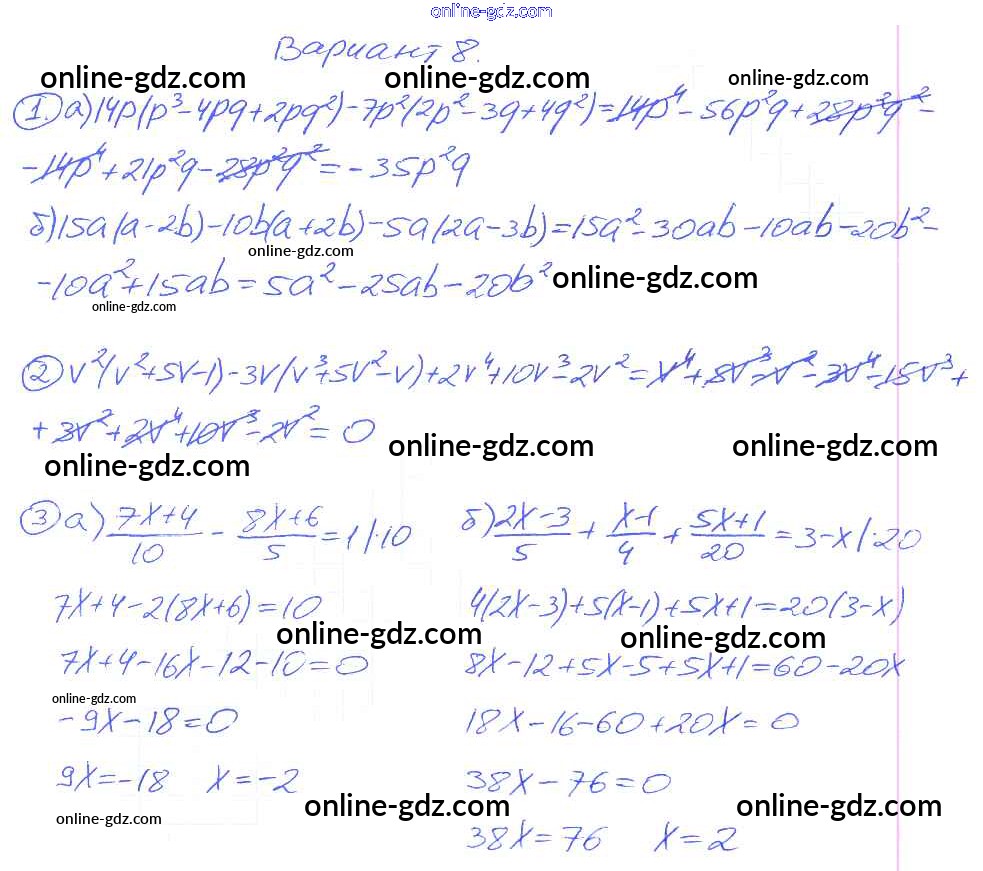 Готовые домашние задания по Алгебре за 7 класс Дидактические материалы Зив, Гольдич 2013 - СР-9 Самостоятельные работы. Варианты 8