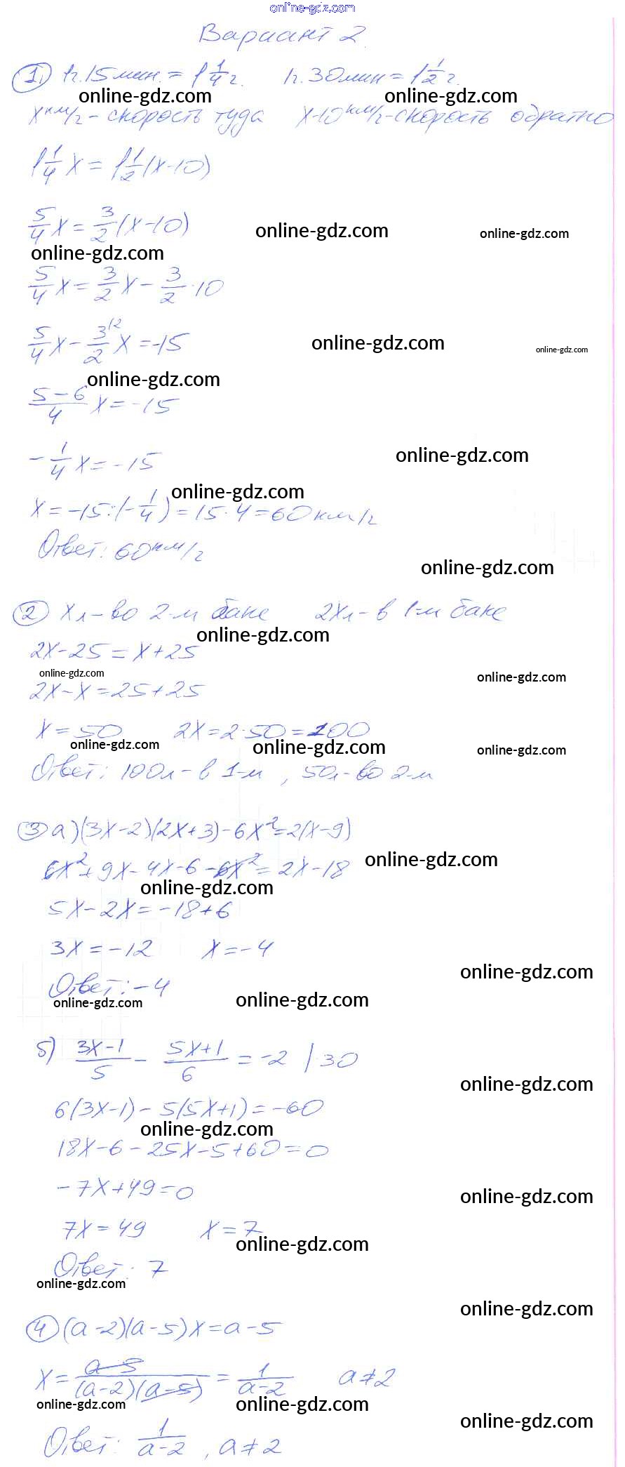Готовые домашние задания по Алгебре за 7 класс Дидактические материалы Зив, Гольдич 2013 - КР-2 Контрольные работы. Варианты 2