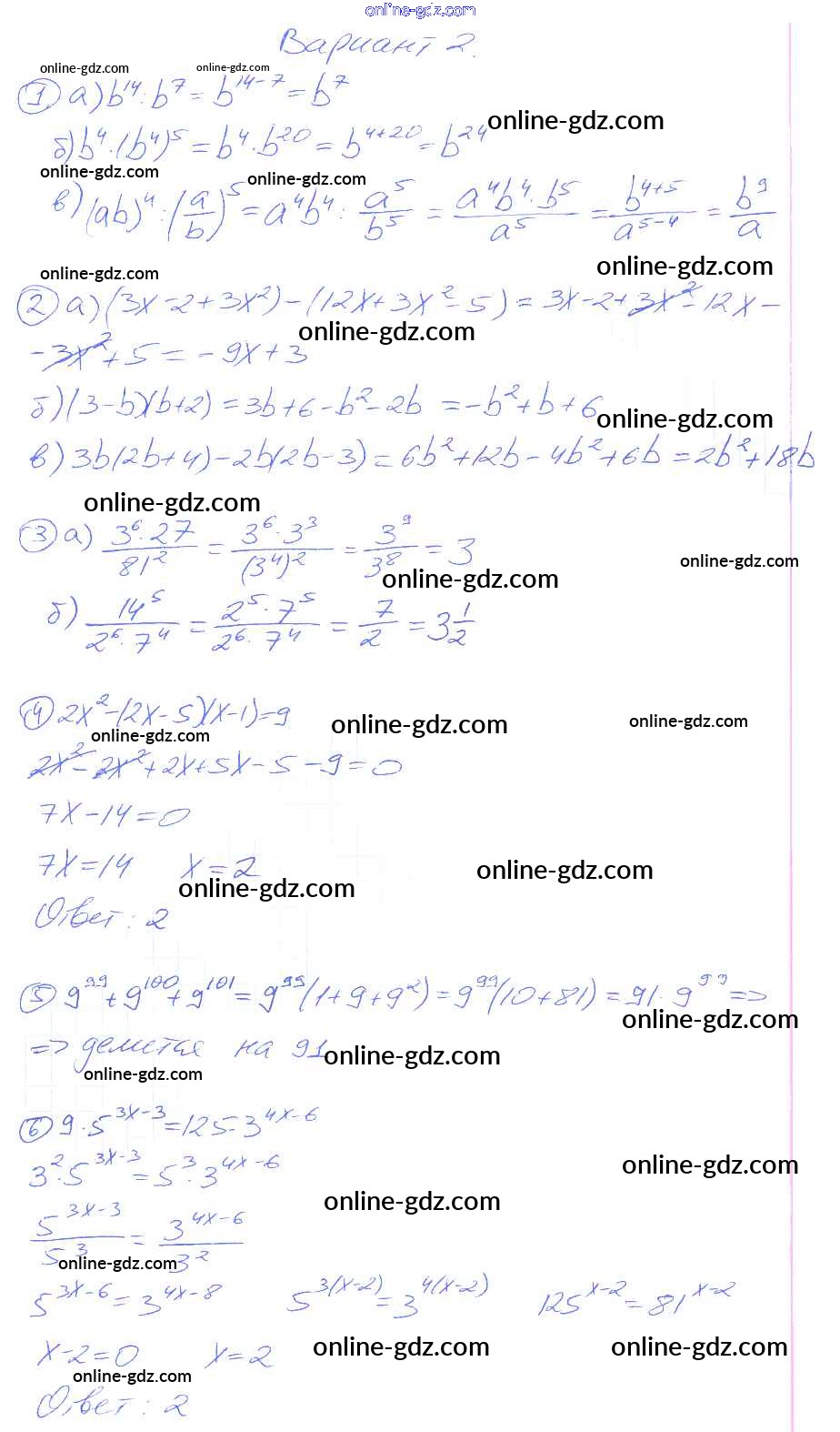 Готовые домашние задания по Алгебре за 7 класс Дидактические материалы Зив, Гольдич 2013 - КР-3 Контрольные работы. Варианты 2