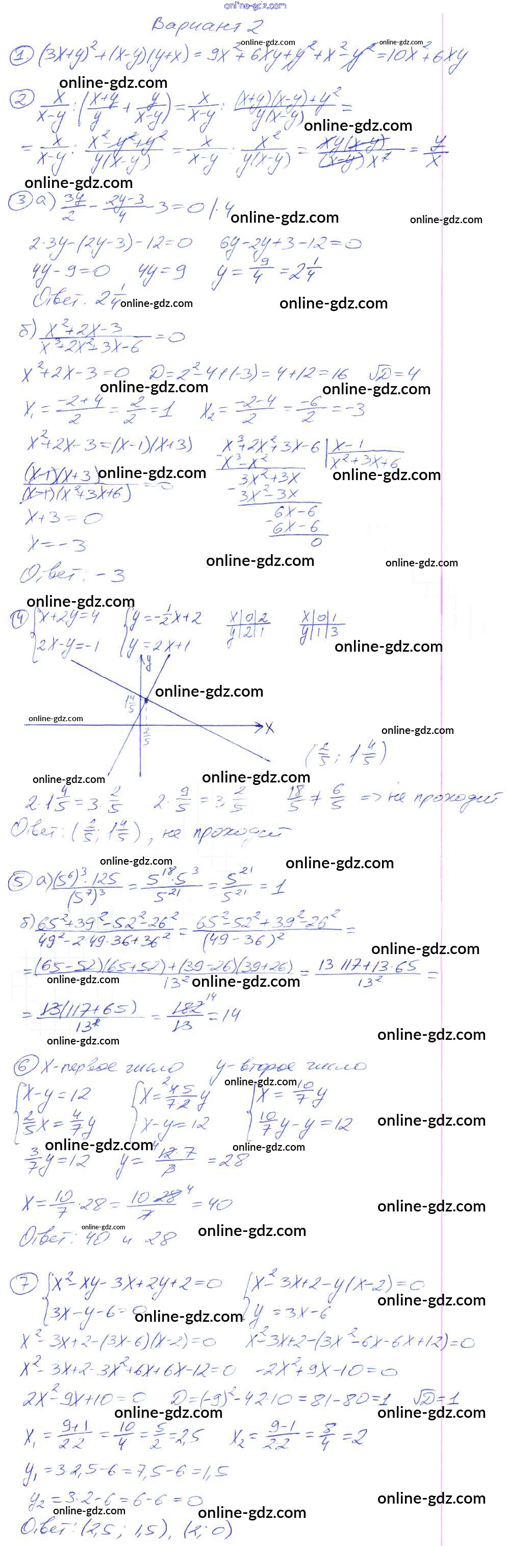 Готовые домашние задания по Алгебре за 7 класс Дидактические материалы Зив, Гольдич 2013 - КР-8 Контрольные работы. Варианты 2
