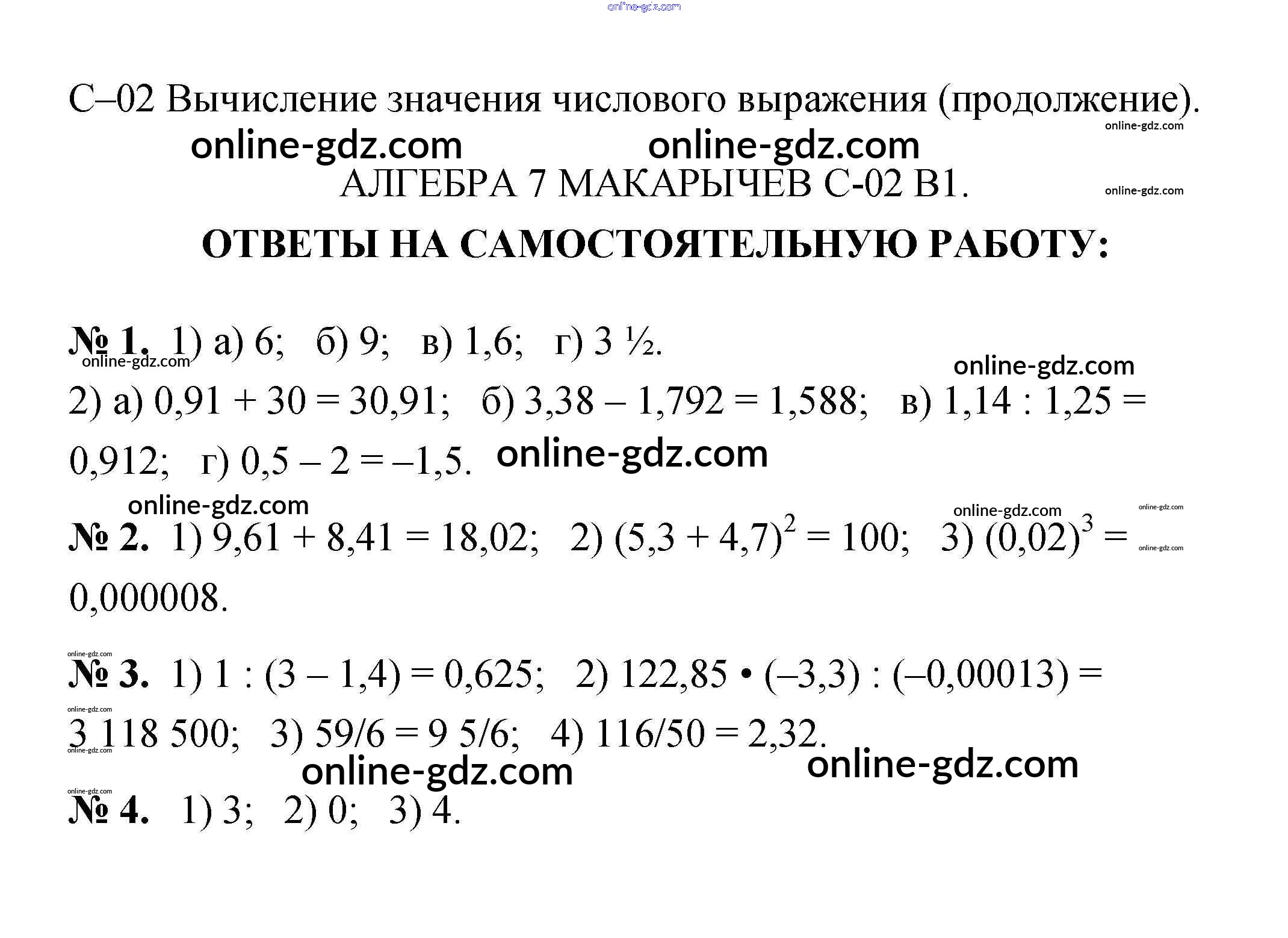 Готовые домашние задания по Алгебре за 7 класс Дидактические материалы Звавич, Кузнецова 2012 - Вариант 1 Самостоятельные работы. Варианты С-2. Вычисление значения числового выражения