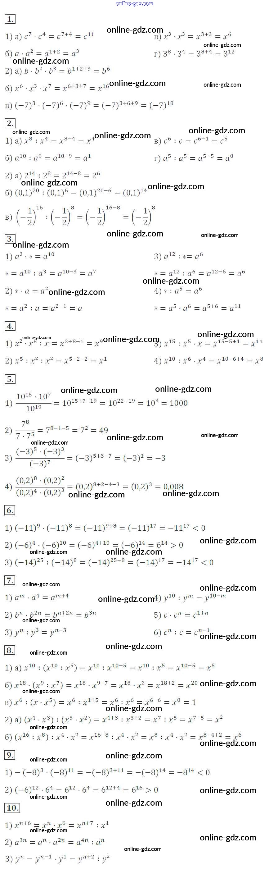 Готовые домашние задания по Алгебре за 7 класс Дидактические материалы Звавич, Кузнецова 2012 - Вариант 1 Самостоятельные работы. Варианты С-20. Умножение и деление степеней с одинаковыми основаниями