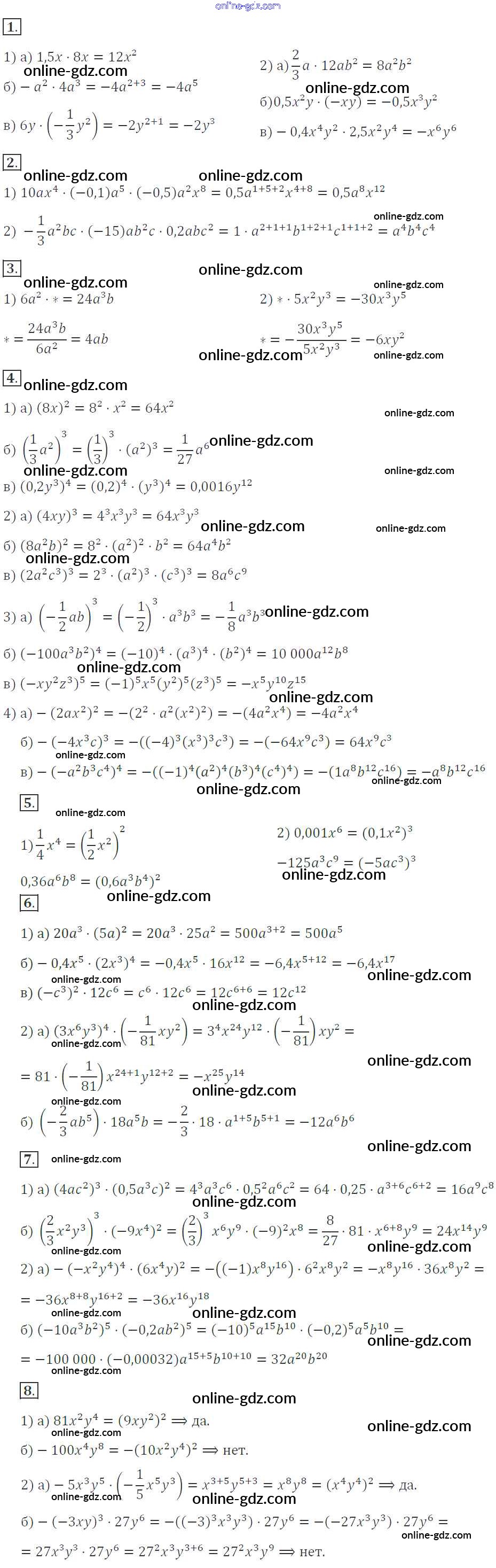 Готовые домашние задания по Алгебре за 7 класс Дидактические материалы Звавич, Кузнецова 2012 - Вариант 1 Самостоятельные работы. Варианты С-24. Умножение многочленов и возведение одночлена в степень