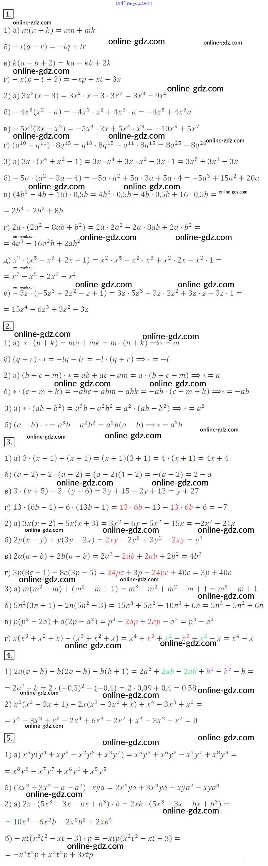 Готовые домашние задания по Алгебре за 7 класс Дидактические материалы Звавич, Кузнецова 2012 - Вариант 1 Самостоятельные работы. Варианты С-28. Умножение одночлена на многочлен