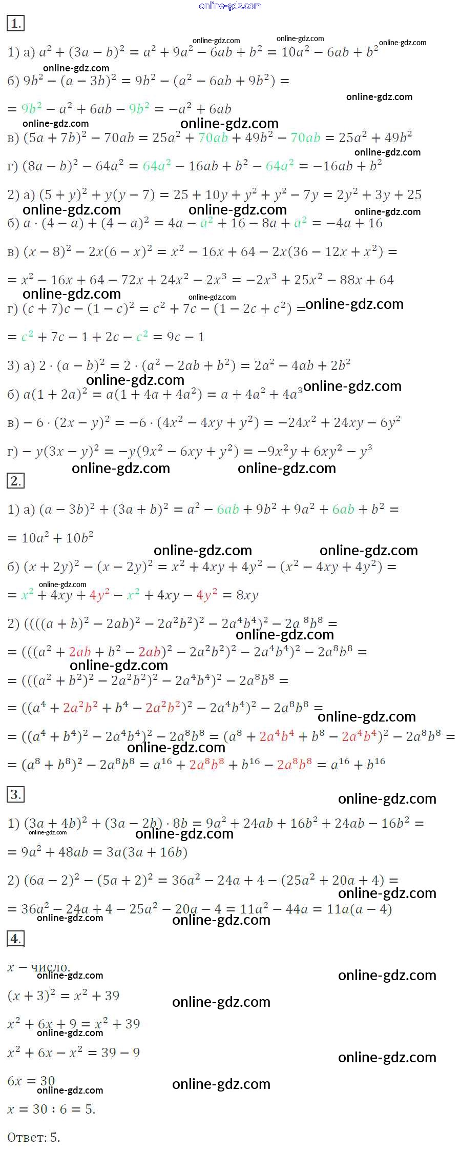 Готовые домашние задания по Алгебре за 7 класс Дидактические материалы Звавич, Кузнецова 2012 - Вариант 1 Самостоятельные работы. Варианты С-38. Преобразование выражений с применением формул квадрата суммы и квадрата разности